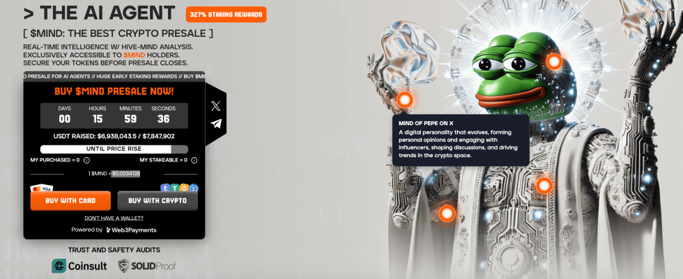 Mind of Pepe се възползва както от популярността на меме монетите, така и от нарастващия интерес към AI-базирани решения в крипто пространството. Със събрани над $6,9 милиона в ICO-то си, проектът съчетаван двата най-горещи тренда в индустрията, което може да доведе до експоненциален растеж на токена. В динамичния крипто свят, където емоциите движат пазарите, AI технологията на Mind of Pepe може да даде значително предимство на своите притежатели.