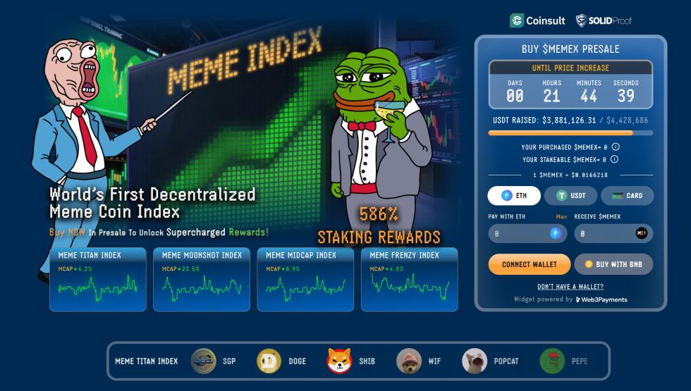 Това прави Meme Index привлекателен както за начинаещи, така и за опитни трейдъри, които търсят излагане на меме сектора, без да рискуват всичко на един проект. До момента предпродажбата на $MEMEX вече е събрала над $3.8 милиона, което показва силен интерес към концепцията за регулирано и интелигентно инвестиране в меме криптовалути.