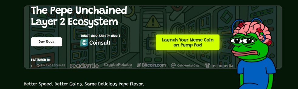 Projekt wyróżnia się nie tylko koncepcją, ale i wykonaniem, oferując tańsze, szybsze transakcje. Pepe Unchained oferuje także pełne wsparcie dla twórców memów.