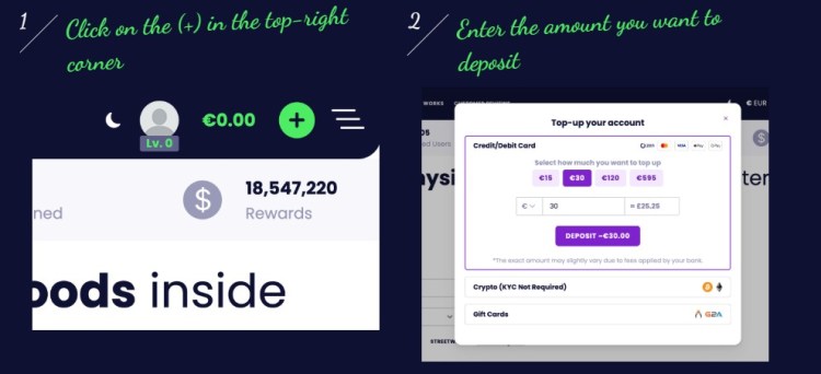 Gdy już masz aktywne konto na stronie JemLit, możesz je łatwo zasilić, wybierając jedną z dostępnych opcji płatności. Znajdź ikonę „+” w prawym górnym rogu i wpisz kwotę, którą chcesz zdeponować.