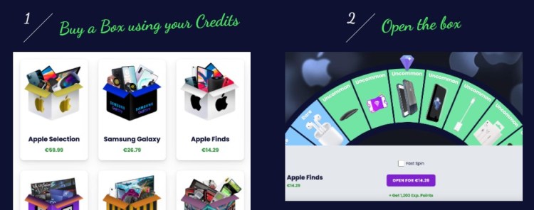 Po otwarciu tajemniczego pudełka na stronie internetowej algorytm platformy określa, co otrzymasz. Niektóre witryny, na przykład JemLit, umożliwiają wymianę lub sprzedaż niechcianych przedmiotów w zamian za kredyt sklepowy, podczas gdy inne wysyłają nagrodę bezpośrednio do domu użytkownika.