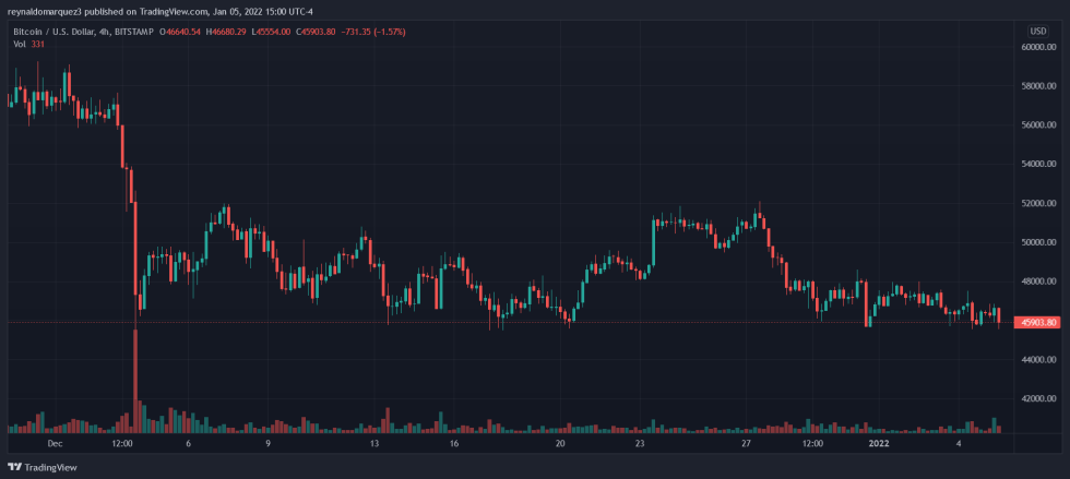 As of press time, BTC’s price trades at $46,023 with sideways movement in 24-hours.