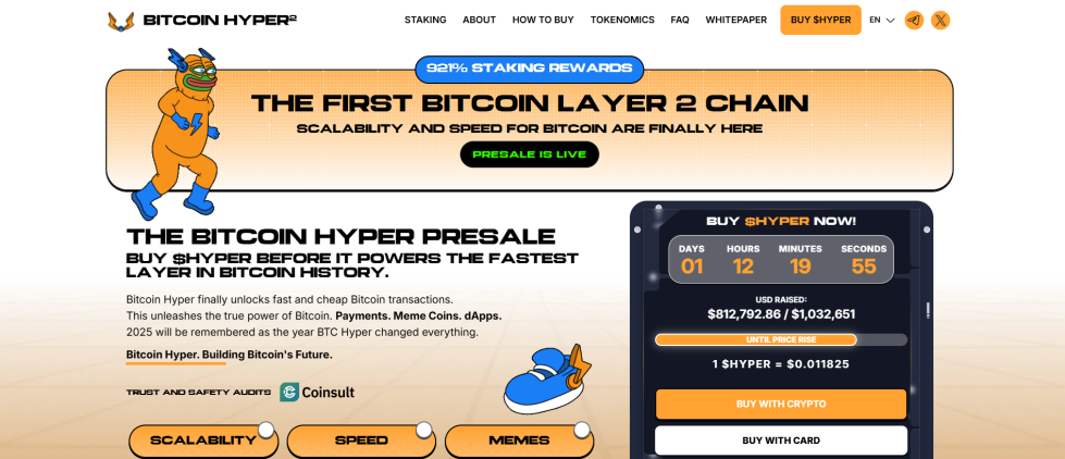 1. Bitcoin Hyper ($HYPER) – Bitcoin Layer-2 omrežje, ki se gradi za hitrost, obseg in dApps