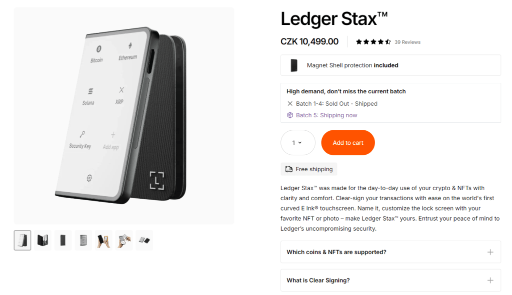 - Podpora více kryptoměn: Uživatelé mohou spravovat různé digitální aktiva v jednom zařízení a mají tak komplexnější přehled o svém investičním portfoliu.
