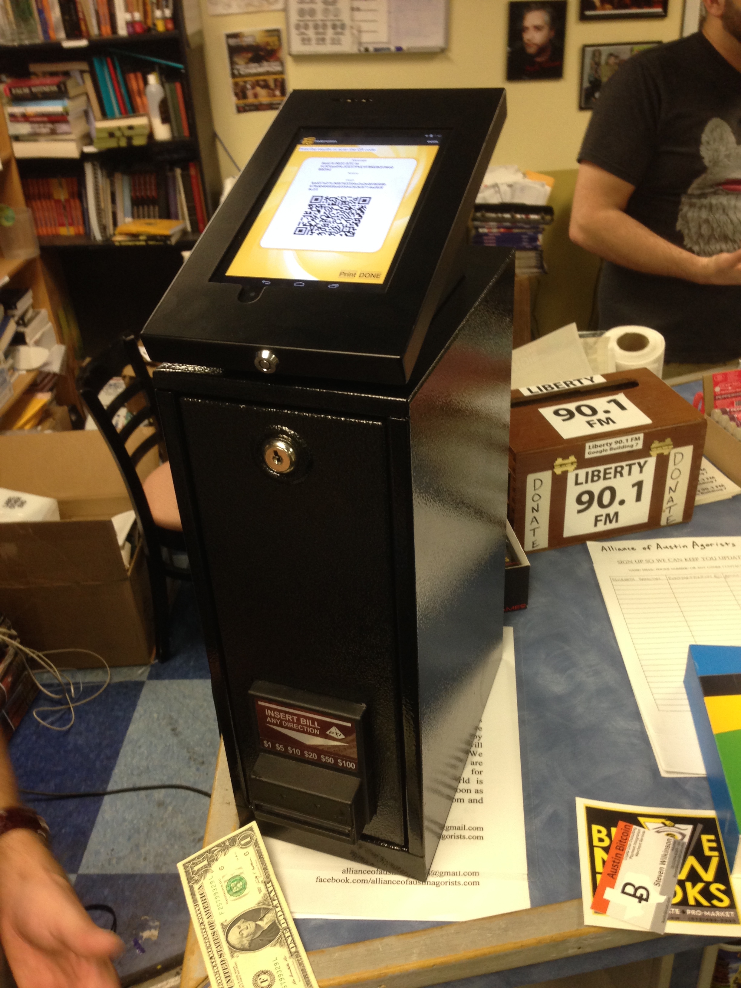 Introducing a new, easier way to make bitcoin transactions. This prototype ATM was developed in part by Cash2btc.com and requires no input of a government issue ID or biometric palm scanning. The ATM takes in over 180 fiat currencies and can convert to bitcoin, litecoin or dogecoin. Best of all, the machine is open sourced technology – meaning anyone in the world is capable of building this machine.