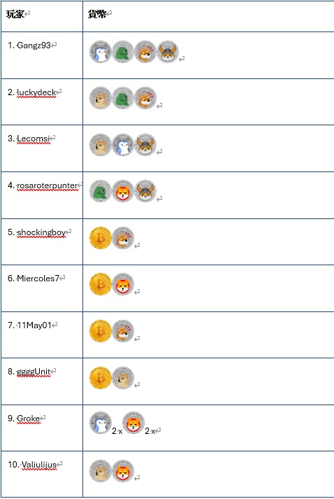 以下為《金幣大師賽》(CoinMasters)挑戰賽前十名玩家名單: