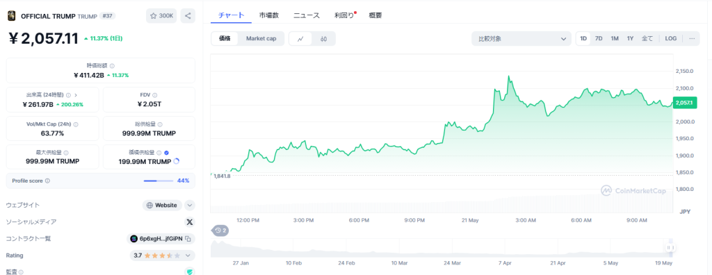 こうした議論にもかかわらず、TRUMPの価格は過去1か月で62%上昇しており、注目度はむしろ高まっている。
