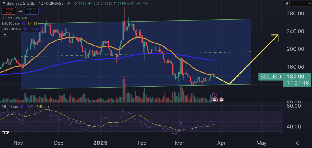 ราคา Solana ลดลง 4% ในรอบ 24 ชั่วโมงที่ผ่านมา เหลือเพียง 137 ดอลลาร์ ในขณะที่ตลาดคริปโตทั้งหมดลดลง 3.5% หลังจาก สหรัฐอเมริกาประกาศเก็บภาษีนำเข้ารถยนต์ 25%
