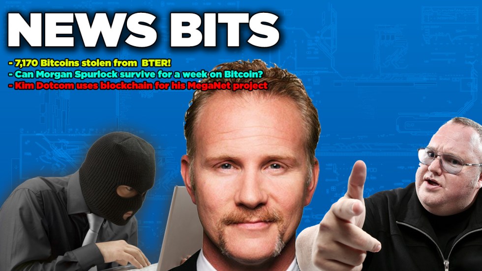 News Bits: – 7,170 Bitcoins stolen from BTER! – Can Morgan Spurlock survive for a week on Bitcoin? – Kim Dotcom uses blockchain for his MegaNet project