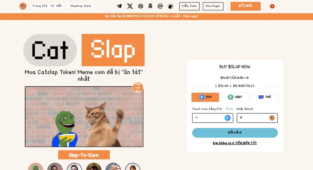 Catslap là một meme coin mới nổi với cộng đồng đang phát triển và tiềm năng tăng trưởng. Catslap đang thu hút sự chú ý của các nhà đầu tư meme coin.