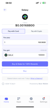 If you’d rather pay with fiat, the presale also accepts cards. You can switch between payment options by clicking ‘Want to pay with crypto/card instead?’ option below the buy button.