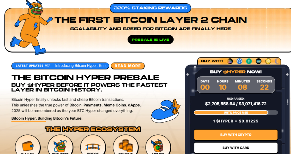 وقد تمكّن اكتتاب عملة بيتكوين هايبر (Bitcoin Hyper) من جمع أكثر من 3 مليون دولار منذ انطلاقه في أيار/مايو.