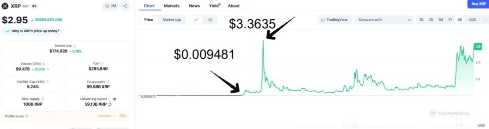 ومن الطبيعي أن لا يلقى هذا التصريح دعماً كبيراً من مجتمعات الكريبتو، إلا أن ما حدث في عام 2017 يدعم هذه الفرضية؛ فقد ارتفع سعرُ العملة حينها من 0.009481$ إلى 3.3635$ خلال تسعة أشهر فقط، مُسجلاً نسبة نموٍّ قدرُها 35,376%.