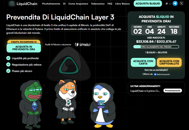 Tra le nuove criptovalute che stanno attirando l’attenzione del mercato, LiquidChain ($LIQUID) si distingue per una visione più tecnica e ambiziosa rispetto alla classica meme coin. Il progetto nasce con l’obiettivo di creare una Layer-3 cross-chain, capace di collegare Bitcoin, Ethereum e Solana in un’unica infrastruttura fluida e interoperabile.