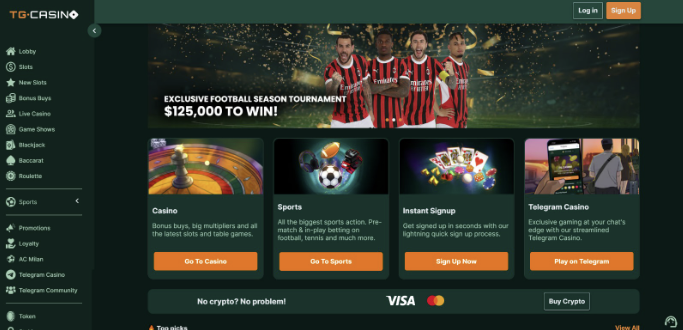 TG.Casino – partner regionale AC Milan e supporto Telegram