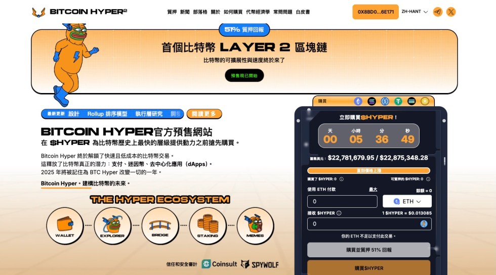 在比特幣價格屢創新高的背景下,一場新的資金浪潮正悄然湧向Layer 2賽道,Bitcoin Hyper(HYPER)作為構建在Solana虛擬機(SVM)上的比特幣擴容項目,已在短短數周內完成近2,300萬美元的融資,成為當前最受關注的預售項目之一。其背後的機構買盤與技術邏輯,正在重塑市場對於比特幣二層解決方案的想像。