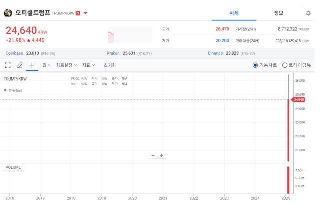 한국 최대 암호화폐 거래소인 업비트는 원화(KRW), 비트코인(BTC), 테더(USDT)와의 거래 쌍을 활성화하여 TRUMP 지원을 추가했다. 이번 발표로 업비트는 도널드 트럼프 전 미국 대통령과 연관된 이 밈코인을 상장한 최신 거래소가 되었다. 이전에 바이낸스와 코인베이스와 같은 주요 플랫폼들도 이 자산을 채택한 바 있다.