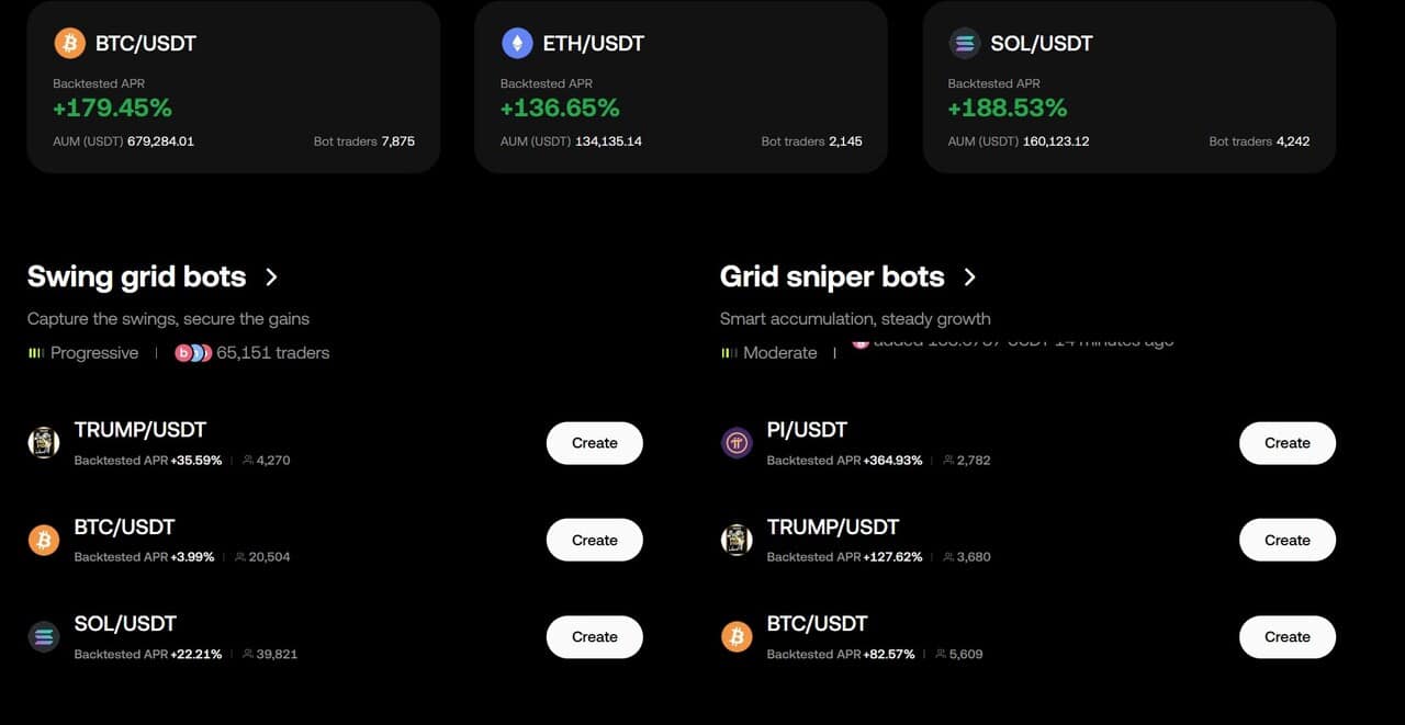 Az OKX különböző kereskedési stratégiákat kínál a különböző piaci feltételekhez igazítva. Az OKX által kínált összes botot itt találod: