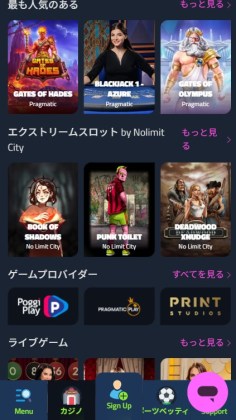 パリマッチは、スロット中心のラインナップに加えてスポーツベットを統合したハイブリッド型のカジノです。アニメーションをテーマにしたオリジナルスロットや、週替わりの限定タイトルが目玉で、飽きのこない設計が魅力でもあります。ライブカジノも充実しており「派手な演出と遊びやすさが両立している」とプレイヤーから高評価。エンタメ性を重視するユーザーに最適なサイトです。