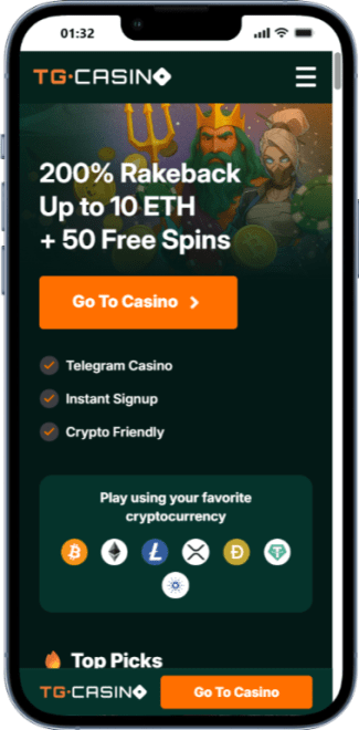 عند الإيداع الأولي، يقدم TG.Casino مكافأة مطابقة بنسبة 200%، بحد أقصى 10 إيثريوم (ETH)، بالإضافة إلى 50 دورة مجانية. يتطلب التأهل للمكافأة إيداعًا أدنى يعادل تقريبًا 25 دولارًا أمريكيًا (بالعملات الرقمية).