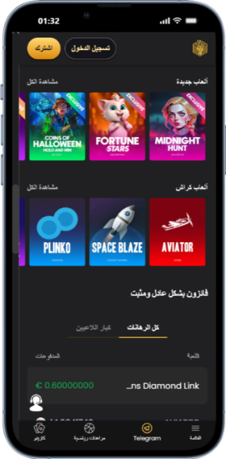- ألعاب الإثبات العادل / الفورية (Provably Fair / Crypto Games): تدعم المنصة ألعابًا مثل Crash، Mines، وغيرها من الألعاب التشفيرية الفورية، حيث يمكن للاعب التحقق من شفافية و عدالة النتائج.