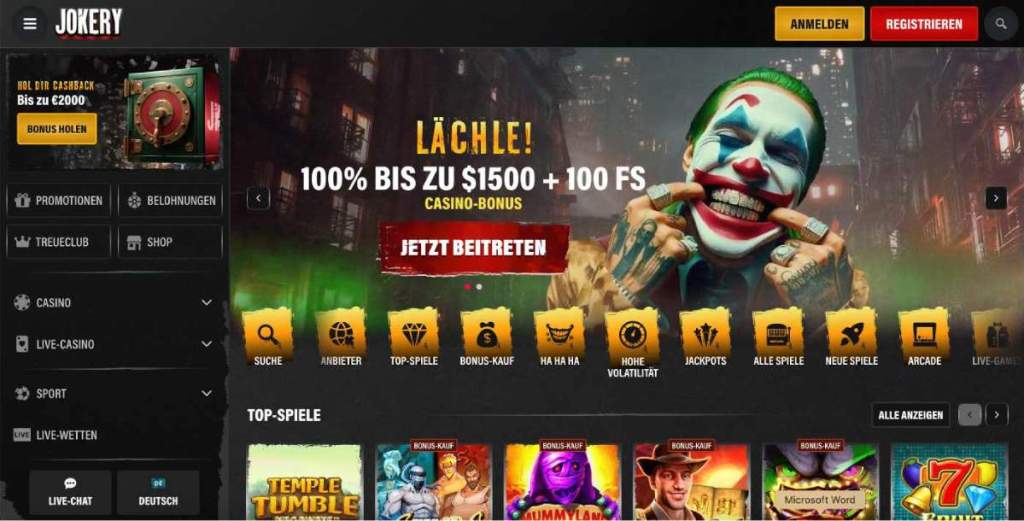 Mit 10.000+ Spielen, darunter Slots, Tischspiele und Live-Casino, überzeugt das Jokery durch Vielfalt. Dank moderner Zahlungsmethoden für Fiat- und Kryptowährungen erfolgen Ein- und Auszahlungen gebührenfrei und vor allem blitzschnell!