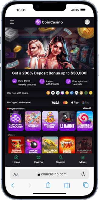 - CoinCasino – High-limit crypto casino with stage-based bonus & weekly cashback