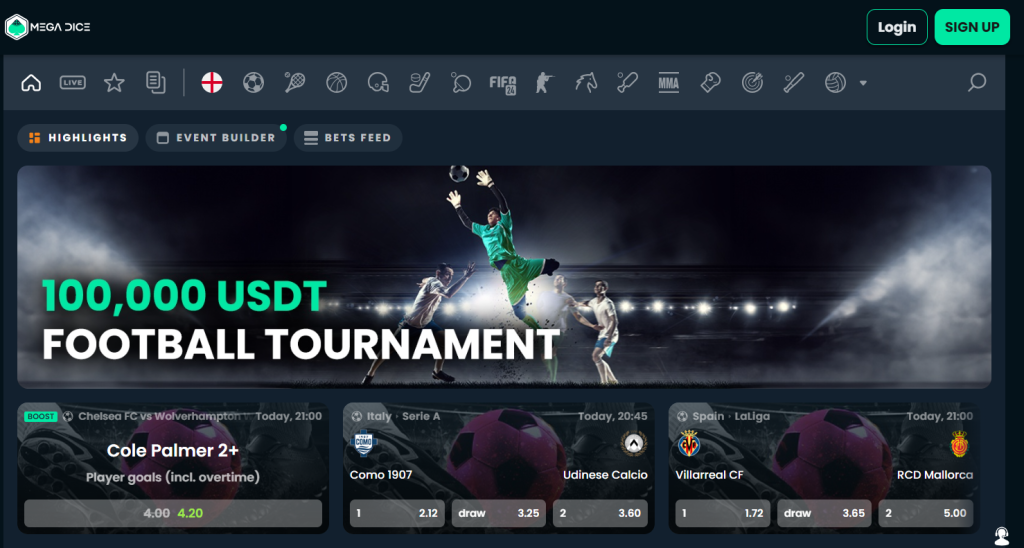 Vstoupit do světa Mega Dice je jako objevit platformu, která redefinuje, jak může vypadat moderní online sázení. Žádné zdlouhavé procesy registrace ani tradiční platby – hráči mají okamžitý přístup k více než 30 sportovním trhům díky podpoře kryptoměn, jako jsou Bitcoin, Ethereum a USDT. Mezi oblíbené možnosti sázek patří fotbalové ligy, hokejové turnaje i netradiční e-sporty, zatímco live sázky přinášejí atmosféru stadionu přímo na obrazovku.