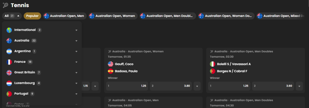 Platforma zahrnuje možnost sázet na více než 40 disciplín, včetně méně obvyklých, jako jsou motorsporty nebo plážový volejbal. Sázení na živé události umožňuje rychlé reakce na změny, zatímco betbuilder otevírá dveře komplexním strategiím. Tyto funkce ocení jak nováčci, tak zkušení sázkaři.