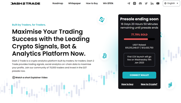Dash 2 Trade, a new crypto trading signals and analytics dashboard, is wrapping up its presale after raising more than $10.3 million for the project. Investors have only 16 days left to buy the project’s $D2T crypto token during the presale.
