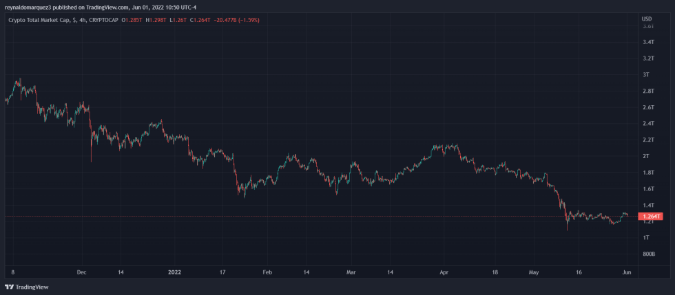 At the time of writing, the total crypto market cap stands at $1.2 trillion with a 1% loss on the 4-hour chart.