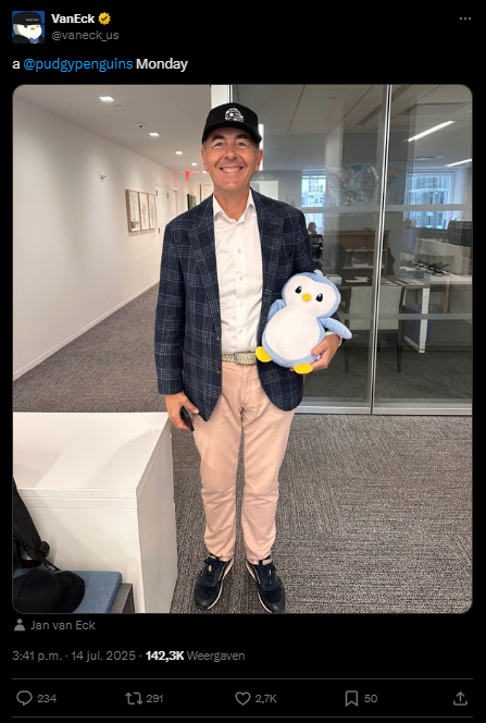 Daarnaast heeft Canary Capital een spot PENGU ETF aanvraag ingediend bij de Amerikaanse Securities & Exchange Commission (SEC). Dit heeft voor veel enthousiasme gezorgd bij de community. De SEC heeft de aanvraag eerder deze maand al erkend, wat betekent dat ze maximaal 240 dagen hebben om tot een definitief besluit te komen.