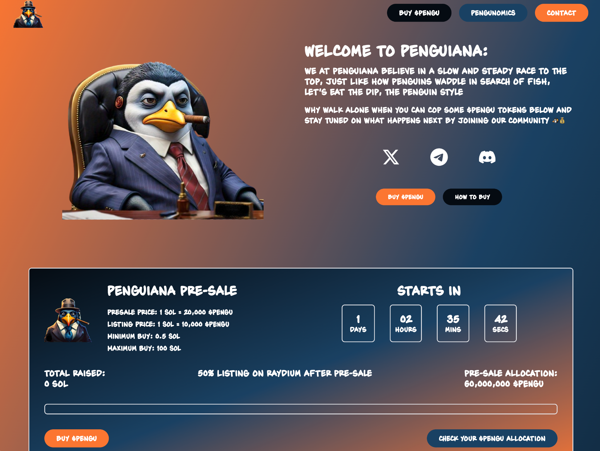 Following the presale, Penguiana plans to list $PENGU on Raydium at a 50% markup from the presale price, immediately benefiting early investors and laying a strong foundation for future market performance.