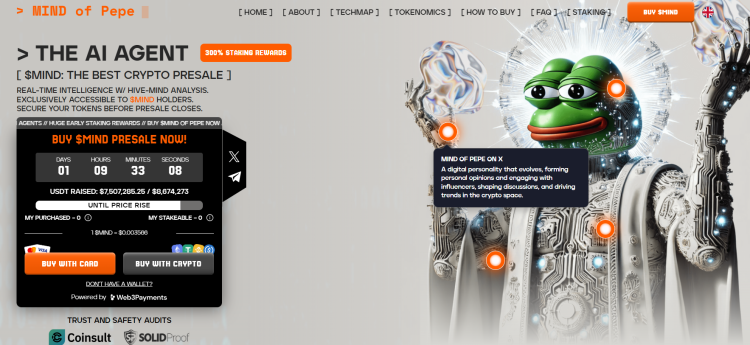 Mind of Pepe maakt slim gebruik van de populariteit van Pepe Coin en de community daaromheen. Ten opzichte van Pepe Coin heeft $MIND een serieuze toevoeging waarvan investeerders gebruik kunnen maken. In het ecosysteem wordt namelijk hard gewerkt aan de AI-agent die investeerders kan voorzien van de laatste updates en tips in de crypto space.