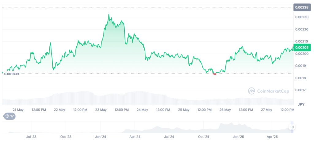 その後、緩やかな回復が続いています。5月27日には0.000014ドルの水準に回復しました。取引量が高まれば、ブレイクアウトの機会が増えるかもしれません。