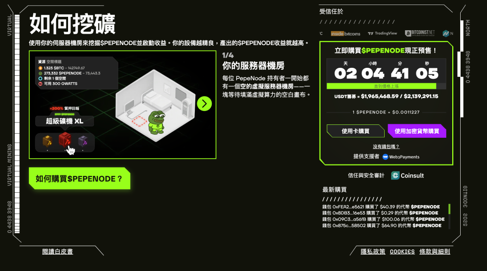 要理解其運作方式,必須先明白PepeNode的核心概念。正如前述,該項目正在構建一個虛擬挖礦遊戲,讓用戶無需昂貴硬體或複雜配置,即可挖掘PEPENODE代幣。