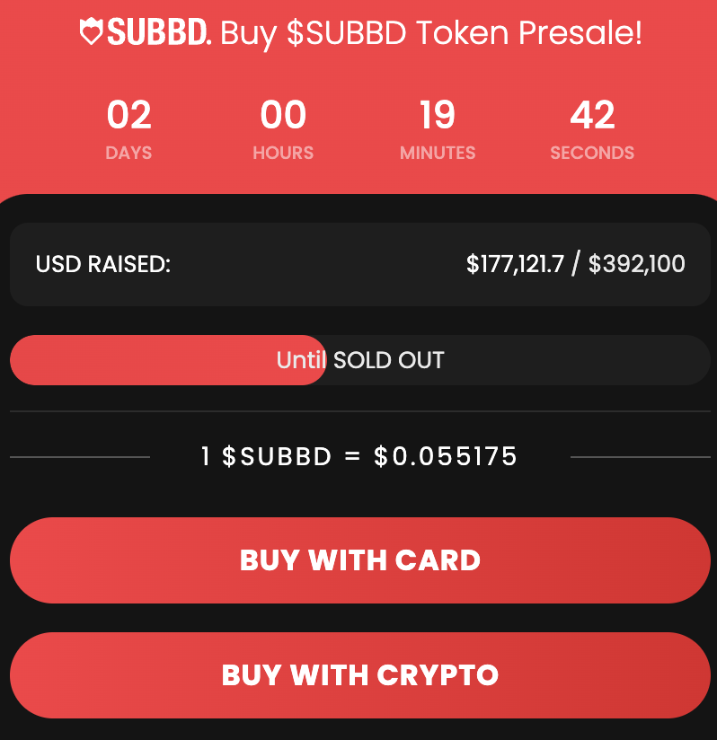 Hingga saat ini, SUBBD telah berhasil mengumpulkan lebih dari $170.000 melalui presale, dengan harga per token sebesar $0.055175 – menandakan minat dan antusiasme investor yang kian meningkat.