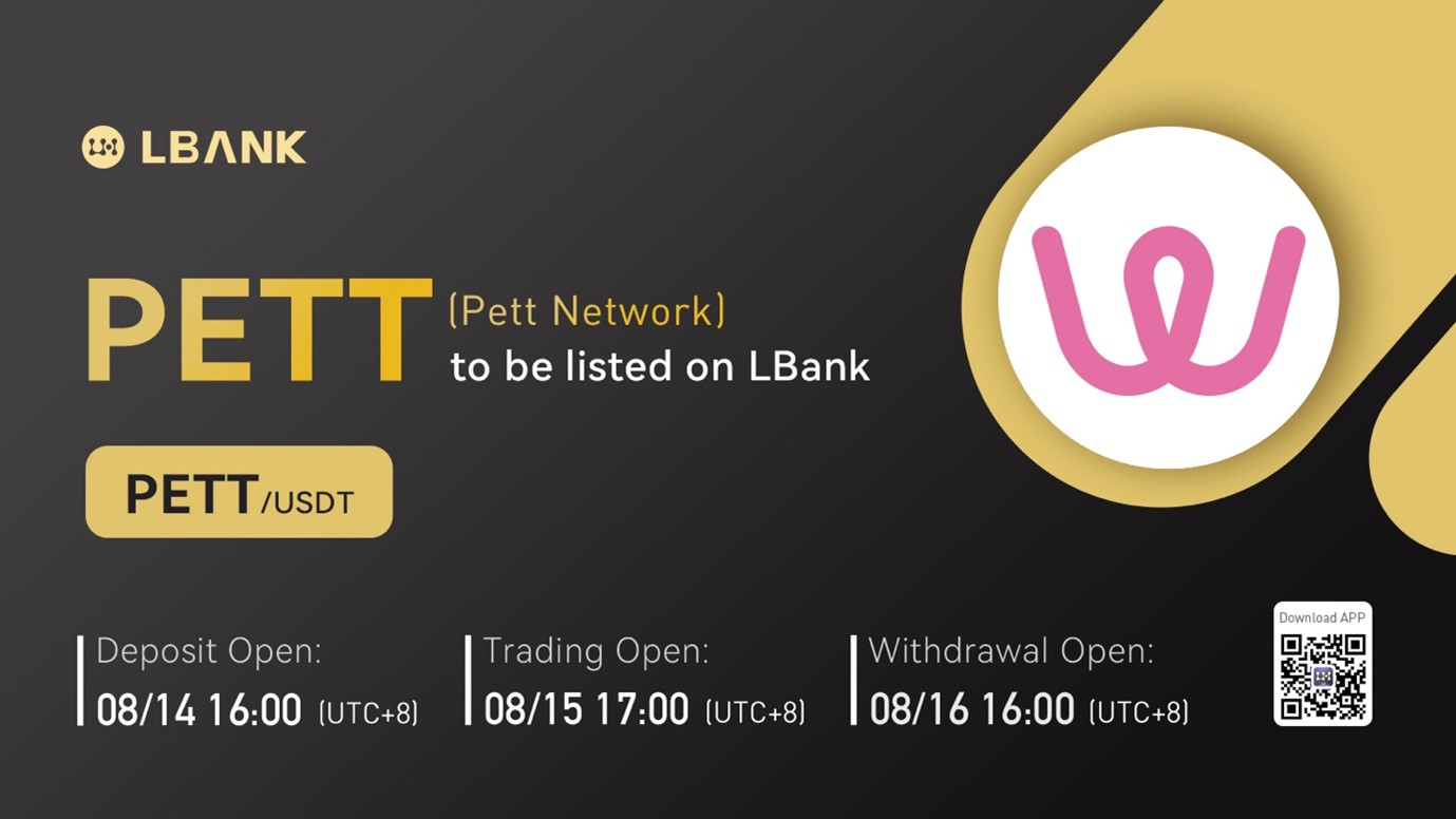 INTERNET CITY, DUBAI, Aug. 15, 2022 – LBank Exchange, a global digital asset trading platform, has listed PETT on August 15, 2022. For all users of LBank Exchange, the PETT/USDT trading pair is now officially available for trading.