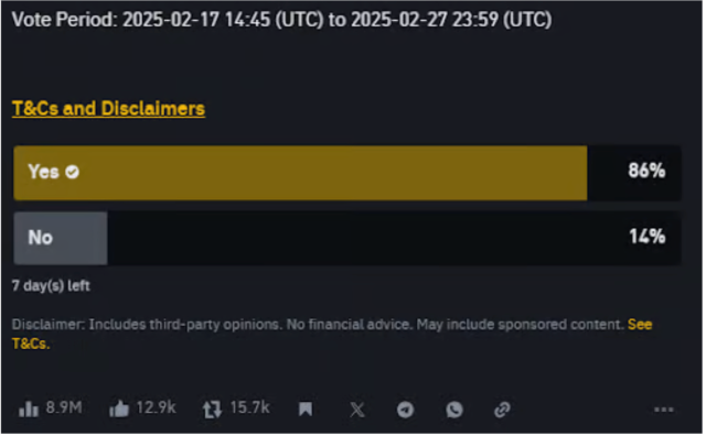 파이코인은 OKX, 바이비트, 비트마트, Gate.io, MEXC, 비트겟 등 여러 중앙화 거래소에 빠르게 상장됐다. 하지만 세계 최대 암호화폐 거래소인 바이낸스는 아직 상장을 확정하지 않았다. 대신 바이낸스는 관심도를 알아보기 위해 커뮤니티 투표를 시작했고, 투표는 2025년 2월 27일에 끝날 예정이다. 이 투표 결과가 바이낸스의 파이코인 지원 결정에 영향을 미칠 것으로 보인다.
