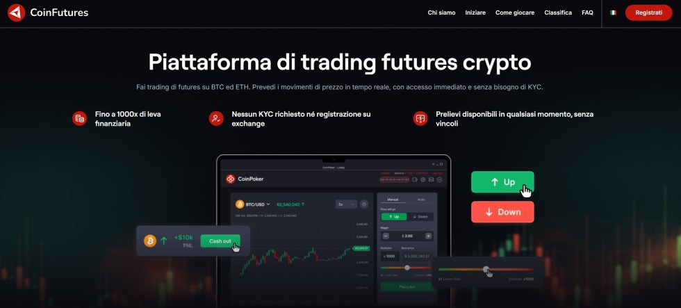 CoinFutures si sta affermando tra i trader italiani che desiderano operare contratti futures su Solana con rapidità e leva estrema. Senza obbligo di registrazione o KYC, la piattaforma consente di aprire posizioni long e short con leva fino a 1.000x, ideale per chi padroneggia operazioni ad alto rischio.