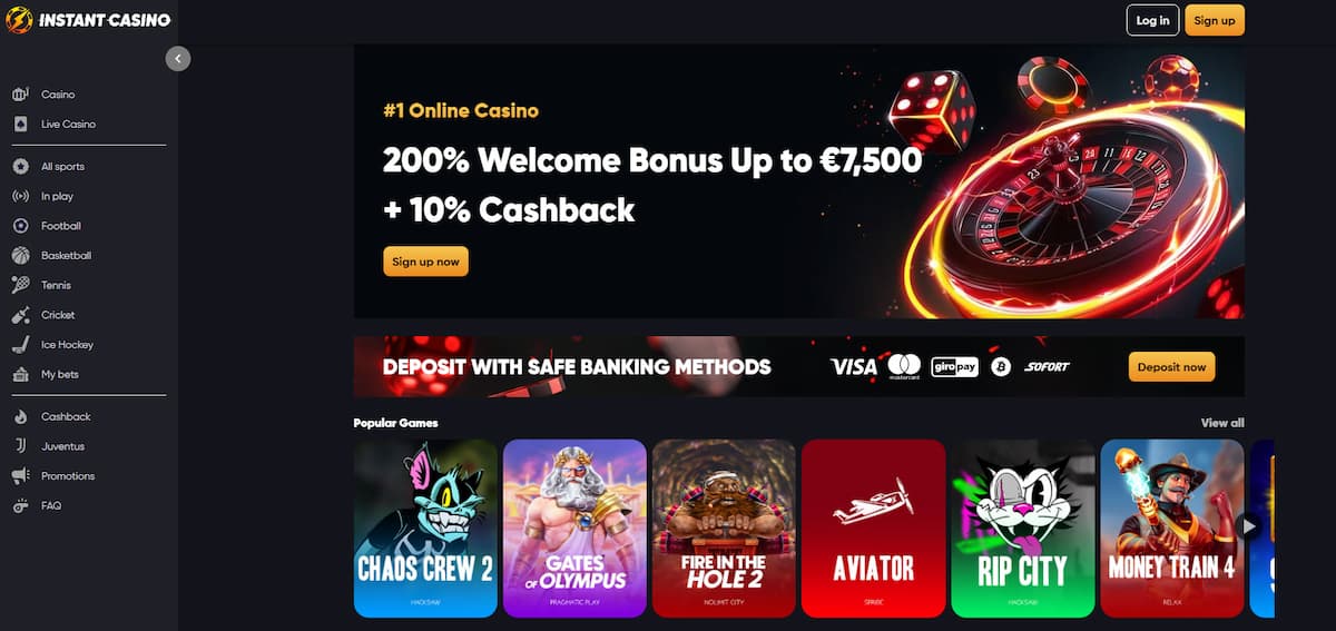 - Instant Casino – Mimoriadne rýchle kasíno s elegantným rozhraním a okamžitými výplatami.