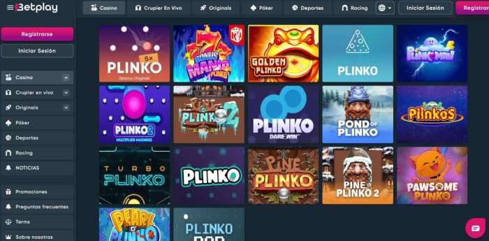 Puedes explorar la sección de casino o bien utilizar el buscador para colocar la palabra ‘Plinko’ y ver todas las versiones disponibles. Luego, simplemente escoge la que más te guste para jugar.