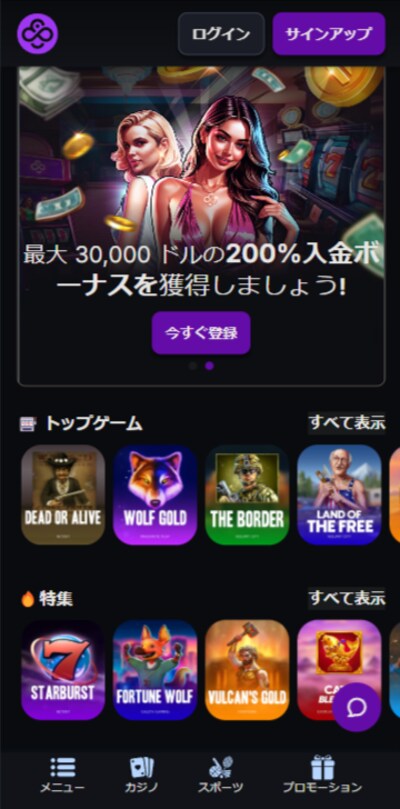 最大1BTCの200%ウェルカムボーナス + 50回の無料スピン |