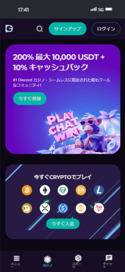 暗号資産入出金に特化したカジノのため、入金からプレイ開始までが非常にスムーズで、