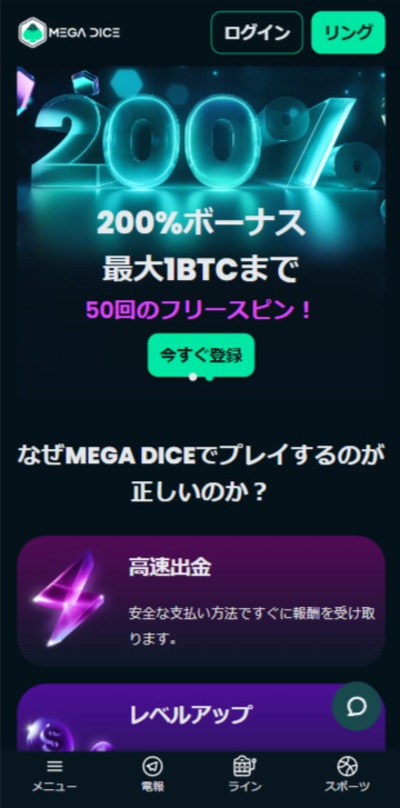 - Mega Dice(メガダイス):一撃性のあるスロットが中心で、スピーディーな展開を求める人に向いたサイト。