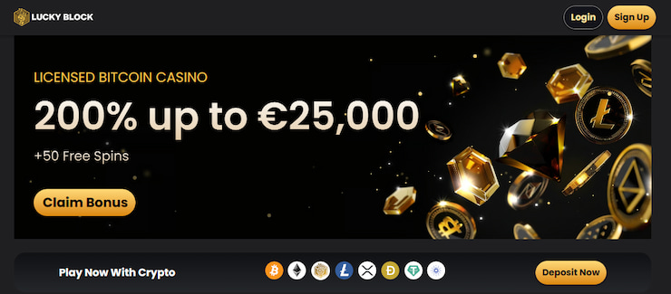 Tāpat kā iepriekšējā mūsu saraksta vietne, Lucky Block ir kripto tiešsaistes kazino. Šeit jūs nevarēsiet tieši izmantot savas kartes vai e-makus, taču tas piedāvā iestrādātas kriptovalūtas iegādes iespējas uz vietas, kas ir efektīvs risinājums fiat lietotājiem.