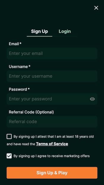 Noklikšķiniet uz pogas ”Sign-Up” augšējā labajā stūrī. Noteikti izlasiet ”Noteikumu un nosacījumu” dokumentu, lai uzzinātu visus spēles noteikumus izvēlētajā Plinko kazino.