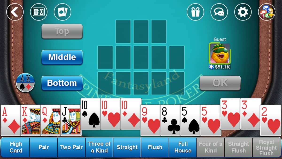 Các nhà cái có thiết lập bàn chơi Poker Bing Dứa khá giống nhau. Cụ thể như sau: