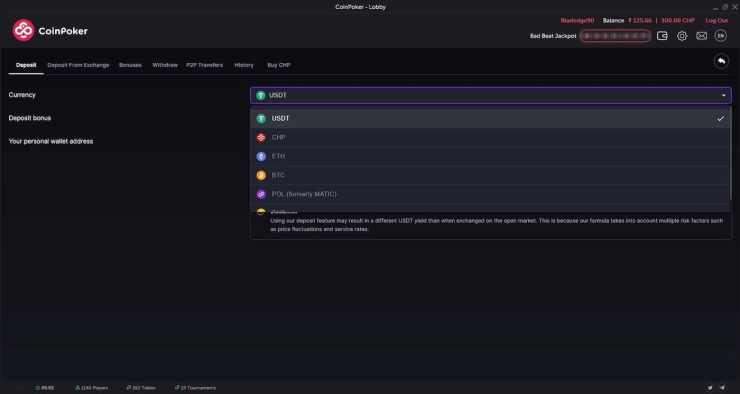 Pre hranie pokeru o reálne peniaze je potrebné vložiť prostriedky na váš účet. V sekcii “Deposit” si vyberte preferovanú platobnú metódu a zadajte sumu, ktorú chcete vložiť. Prostriedky sa na vašom účte objavia okamžite po spracovaní prevodu.