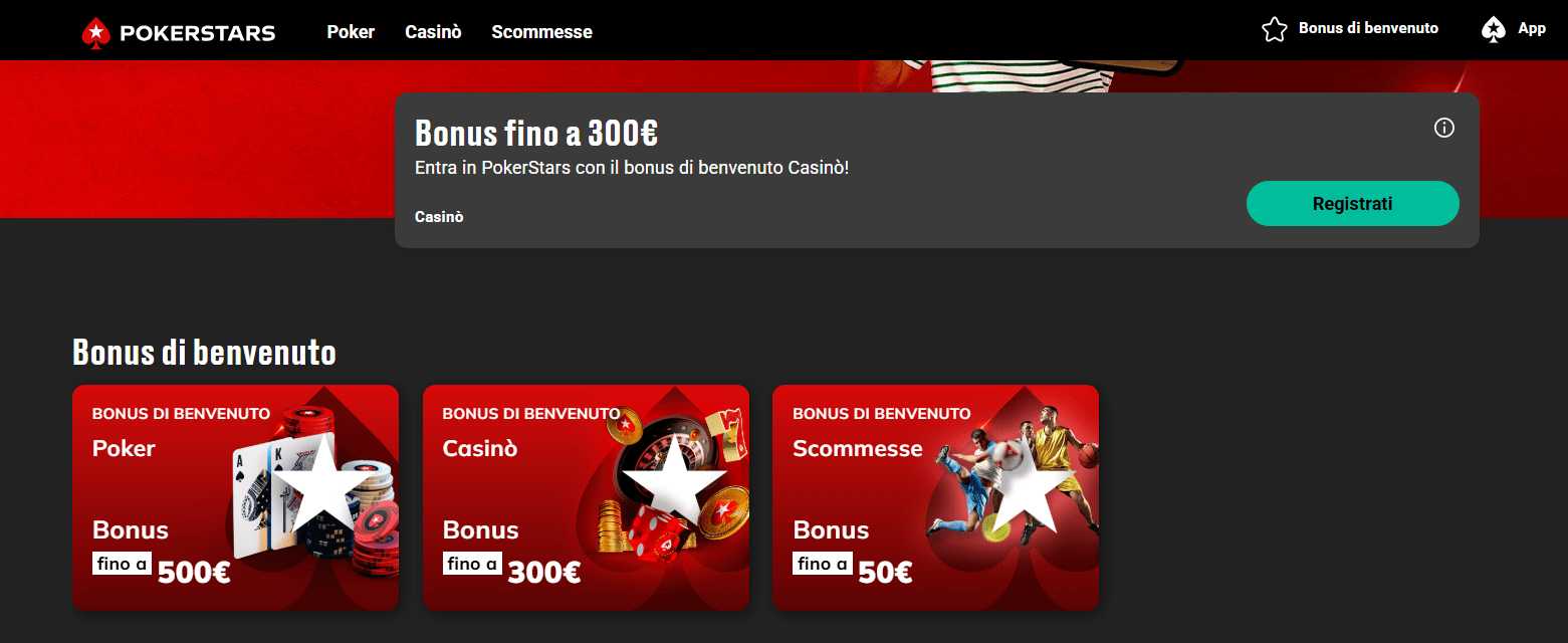PokerStars è sinonimo di poker in tutto il mondo. La versione italiana, completamente ADM, mantiene gli stessi standard internazionali: tornei multi-tavolo, Sit & Go, freeroll e un software riconosciuto come il migliore del settore.